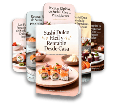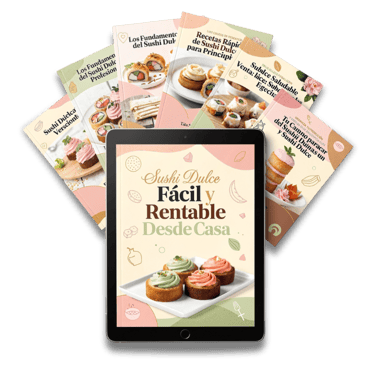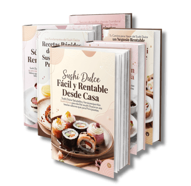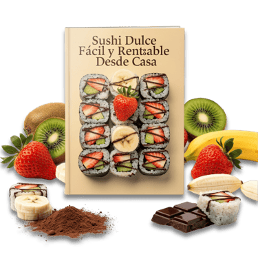 ✔️ Aprende paso a paso a preparar distintos tipos de Sushi Dulce, utilizando arroz, crepe, bizcochuelo, masa de galleta y combinaciones creativas, con recetas claras y fáciles de seguir.